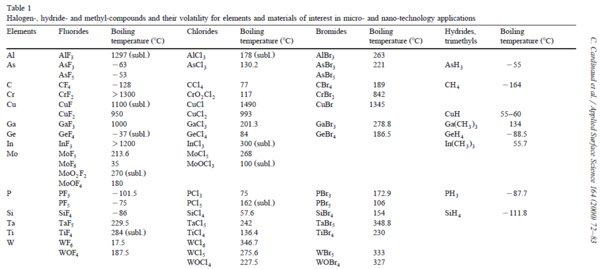 성공적인 복잡한 에칭 공정을 개발하는 열쇠는 에칭될 물질과 휘발성 생성물을 형성할 적절한 가스 에칭 화학을 찾는 것이다(표 1 참조). 일부 난해한 재료(예: 자성 재료)의 경우 웨이퍼 온도를 높여야만 휘발성을 얻을 수 있다. 플라즈마 공정에 영향을 미치는 주요 요인은 다음과 같다.