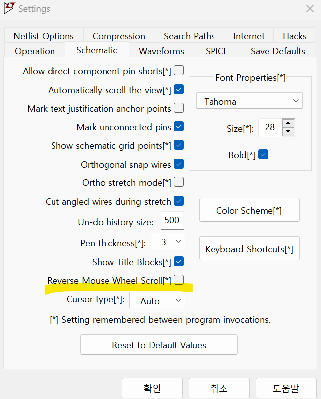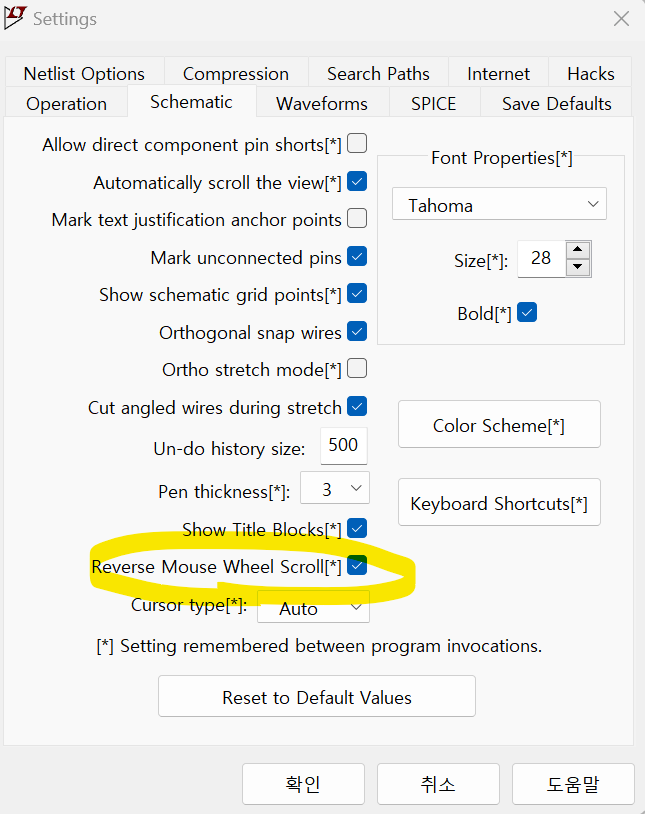 LTspice 화면 확대 축소 방향 반전