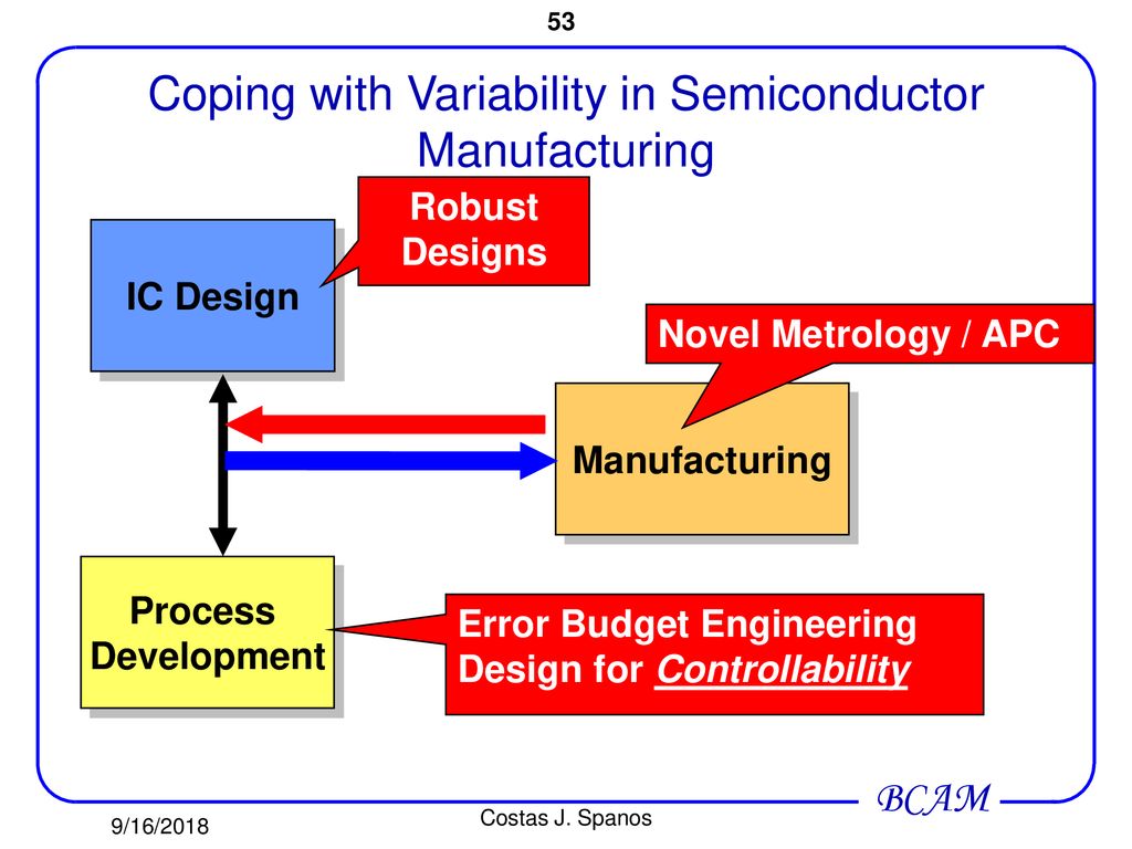 아날로그 IC 설계에서 가장 중요한 도전 중 하나는 반도체 칩에 구축된 개별 장치의 변동성에 관련된다. 보드 레벨 회로 설계가 각각 테스트되어 가치에 따라 분류된 장치를 디자이너가 선택할 수 있게 하는 것과 달리, IC의 장치 값은 디자이너가 제어할 수 없는 상황에서 넓게 변동할 수 있다. 예를 들어, 일부 IC 저항은 ±20%까지 변동할 수 있고 통합 BJT의 β는 20에서 100까지 변동할 수 있다. 최신 CMOS 공정에서는 수직 PNP 트랜지스터의 β가 1 이하로 떨어질 수도 있다. 설계 도전을 더하는 것은, 장치 속성이 각 처리된 반도체 웨이퍼마다 다를 수 있다는 것이다. 장치 속성은 도핑 기울기 때문에 각각의 개별 IC 내에서도 상당히 변동할 수 있다. 이러한 변동성의 근본 원인은 많은 반도체 장치들이 공정에서 제어할 수 없는 무작위 변동에 매우 민감하기 때문이다. 확산 시간의 약간의 변화, 불균일한 도핑 수준 등은 장치 속성에 큰 영향을 줄 수 있다.