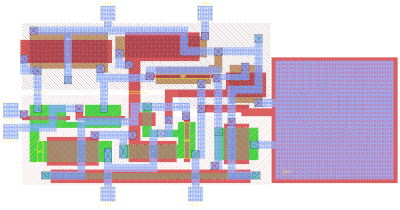 - 물리적 회로 설계: 이 단계는 RTL과 사용 가능한 로직 게이트(표준 셀 라이브러리)의 라이브러리를 가져와 칩 디자인을 생성한다. 이 단계는 IC 레이아웃 편집기 사용, 레이아웃 및 플로어 플래닝, 사용할 게이트 결정, 그들을 위한 위치 정의, 그리고 그들을 연결하는 배선(클록 타이밍 합성, 라우팅)을 포함한다.