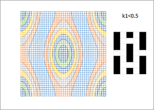 k1 계수는 공정 관련 요인을 포함하며, 통상 생산의 경우 0.4이다. (k1은 실제로 레티클에 입사하는 광의 각도 및 세기 분포와 같은 공정 요인의 함수이다. 공정당 고정된다.) 계산 리소그래피를 통해 이 계수를 낮추면 최소 특징 크기를 줄일 수 있다.