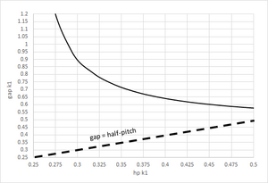 고전 광학에 따르면, 레일리 기준으로 k1=0.61이다. 두 점 사이의 거리가 1.22 파장/NA보다 작으면 두 점 사이의 거리가 유지되지 않고 두 점의 Airy 원반의 간섭으로 인해 더 커진다. 그러나 두 특징 간 거리는 초점 이동에 따라 변경될 수도 있다.
