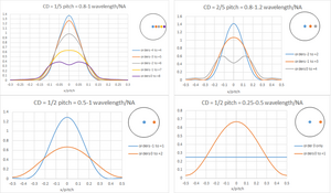 더 많은 회절 차수와 더 많은 조명 광원 점을 사용하는 큰 피치 패턴에서 확률적 효과는 더 복잡해질 것이다.